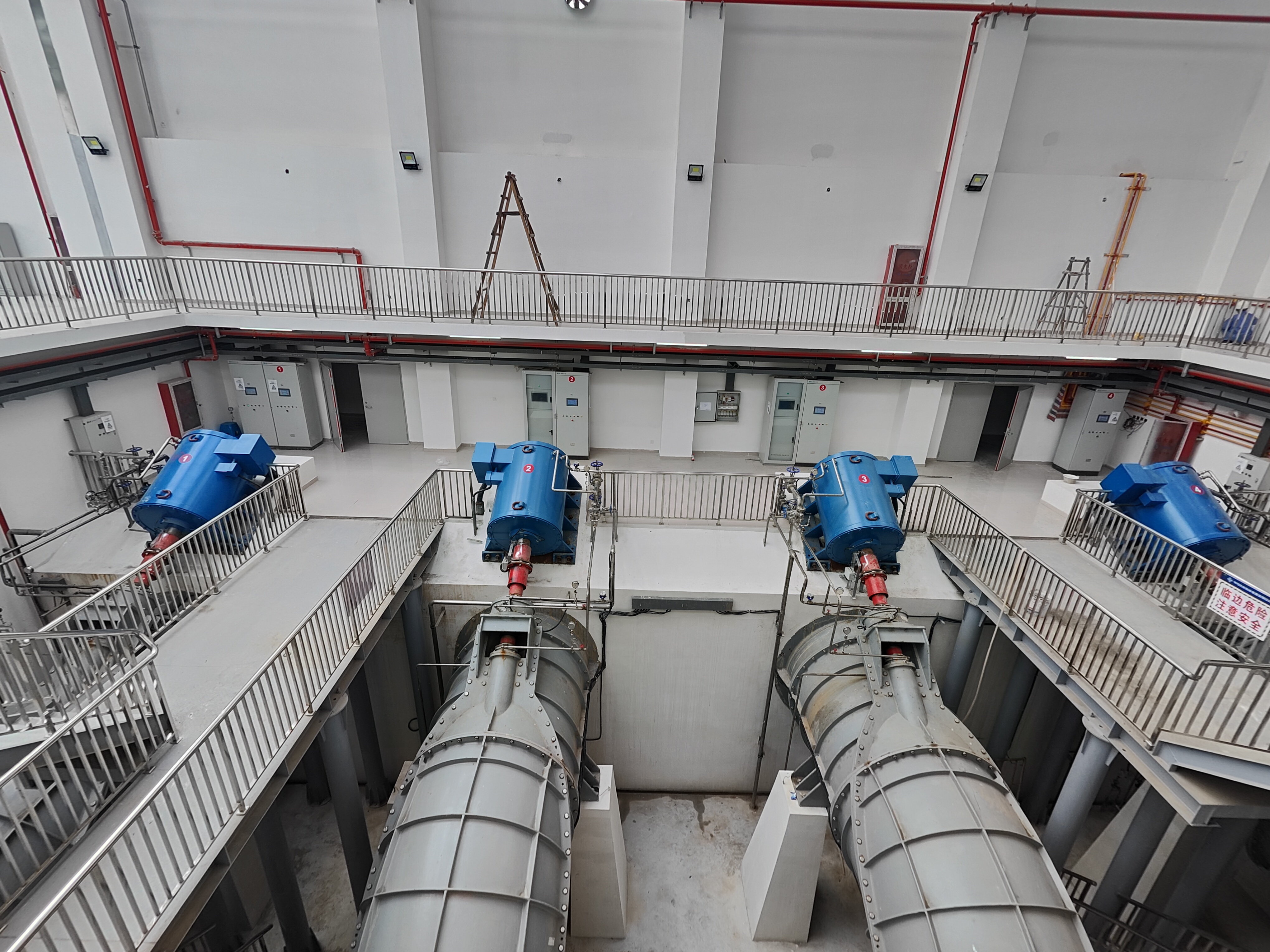泵站共安裝4臺(tái)套斜30°軸流泵機(jī)組,單機(jī)設(shè)計(jì)流量15.0m/s,葉輪直經(jīng)200m,轉(zhuǎn)速為178r/min,葉片采用半調(diào)節(jié)方式,設(shè)計(jì)安放角為0°。